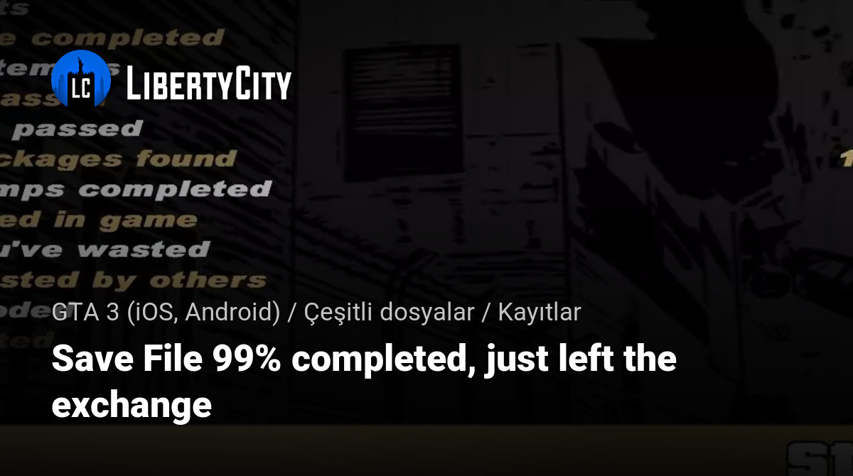 Saves file with 99% of progress, all that remains is the final mission, "The Exchange".