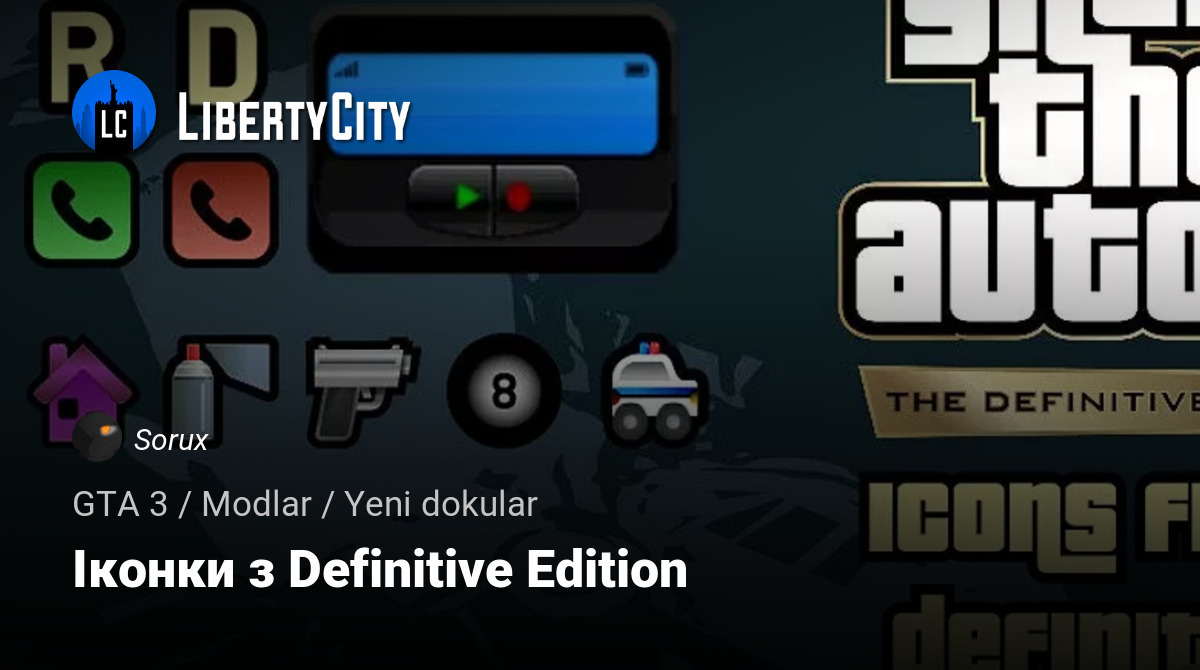 Іконки з GTA 3 — The Definitive Edition тепер в класичній GTA 3! Змінено іконки місій, магазинів, телефонів і зброї. Гра трохи перетвориться за допомогою цих іконок, вони абсолютно не впливають на атмосферу гри.