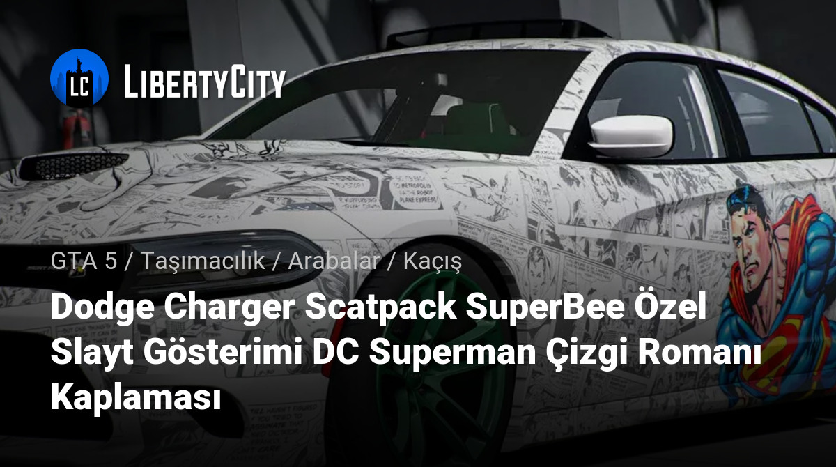 Dodge Charger Scatpack SuperBee Özel Slayt Gösterimi GTA 5 için DC Superman Çizgi Romanı Kaplaması.