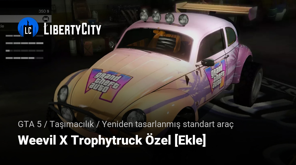 Weevil X Trophytruck Özel, GTA 5 için kompakt bir aracı eşsiz özelliklere sahip güçlü bir arazi aracına dönüştüren bir modifikasyondur. Bu kombinasyon, retro tarzının cazibesini ve mükemmel arazi yeteneklerini bir araya getirerek her türlü zorluğun üstesinden gelebilen bir araç yaratır.