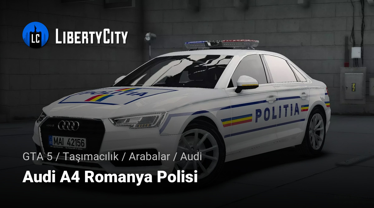 Romanya polisi tarafından kullanılan Audi A4, şık ve modern bir görünüme sahiptir. Araç, Romanya bayrağının renklerinde ince şeritler ve mavi vurgularla beyaz renge boyanmıştır. Kaput ve yanlarda "POLITIA" yazısı bulunmaktadır.