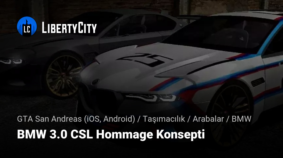 BMW 3.0 CSL Hommage Konsepti — GTA San Andreas Mobile için bir modifikasyondur ve efsanevi BMW 3.0 CSL'ye ithafen tasarlanmış bir konsept aracı oyuna ekler.