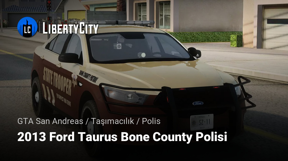 2013 Ford Taurus Bone County Polisi, GTA San Andreas'a stil ve performansı bir araya getiren modern bir polis sedanı getiriyor. Bu araç, Bone County'de devriye gezmek için tasarlandı ve her koşulda konfor ve güvenilirlik sağlıyor.