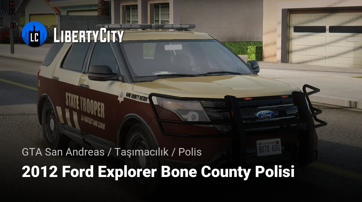 2012 Ford Explorer Bone County Polisi, GTA San Andreas'a çeşitli Bone County koşullarında devriye gezmek için mükemmel bir çok amaçlı polis SUV'si ekliyor. Bu araç, güvenlik güçleri için konfor ve güvenilirlik sağlarken genişlik ve güç sunuyor.