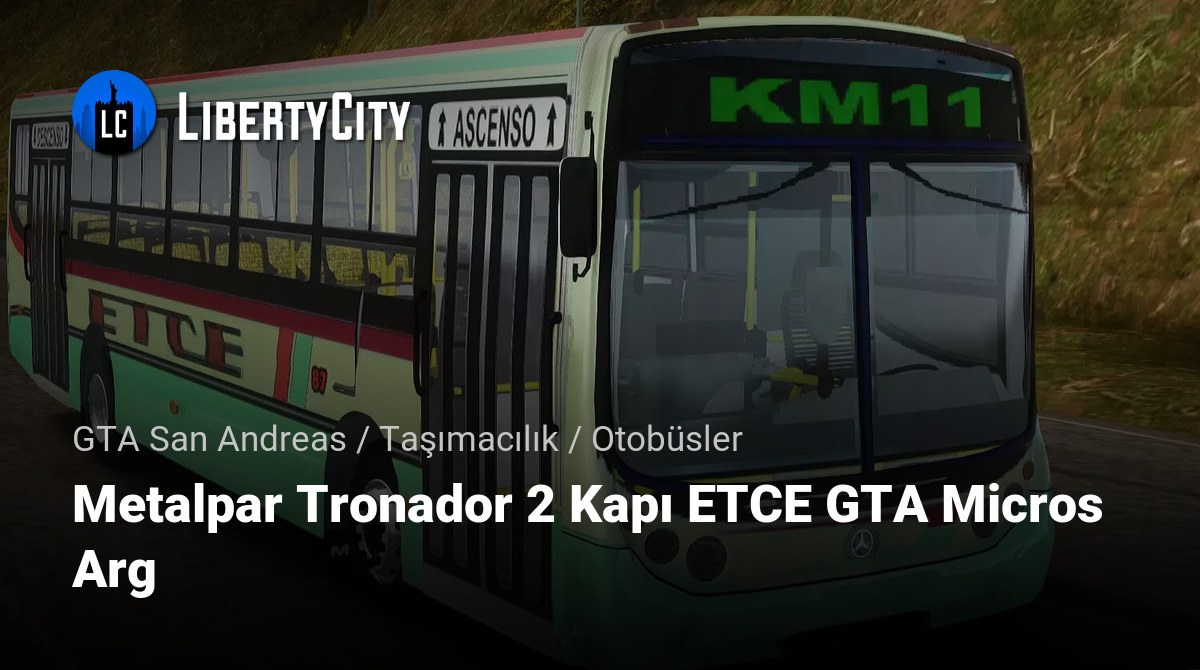 Metalpar Tronador 2 Kapı ETCE GTA Micros Arg — GTA San Andreas oyununda kullanılmak üzere özel olarak tasarlanmış bir şehir otobüsüdür. Bu otobüs, modern tasarımı ve yüksek detay seviyesi ile sanal şehir hatları için mükemmel bir seçimdir.