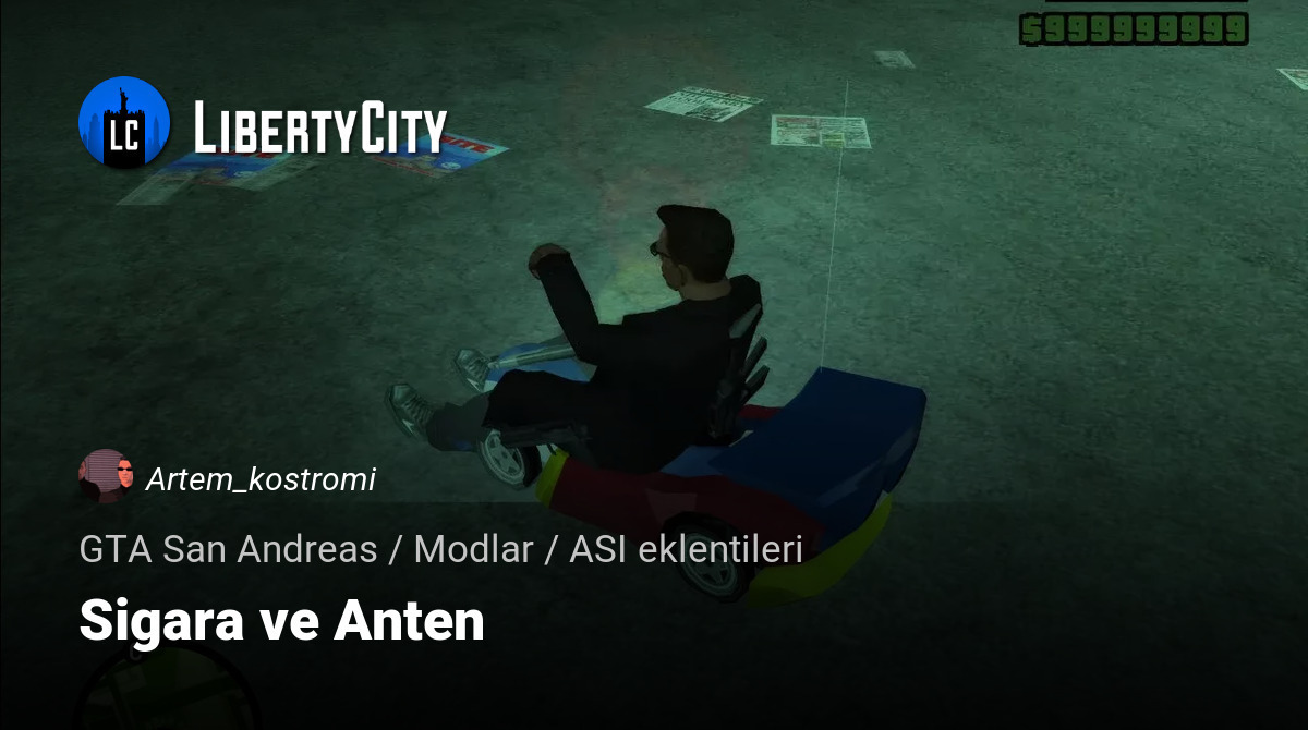 GTA VC'den sigara işlevi ekleyen basit bir mod (CERTAINDEATH hilesi ile geçiş yapılır) ve RC Bandit için bir anten detayı. Antenin uzunluğunu, modelden ofsetini belirleyebilir ve hangi arabada takılacağını seçebilirsiniz. Anten, dalgalanma fiziğine sahiptir, bu da oldukça havalı bir detay!
