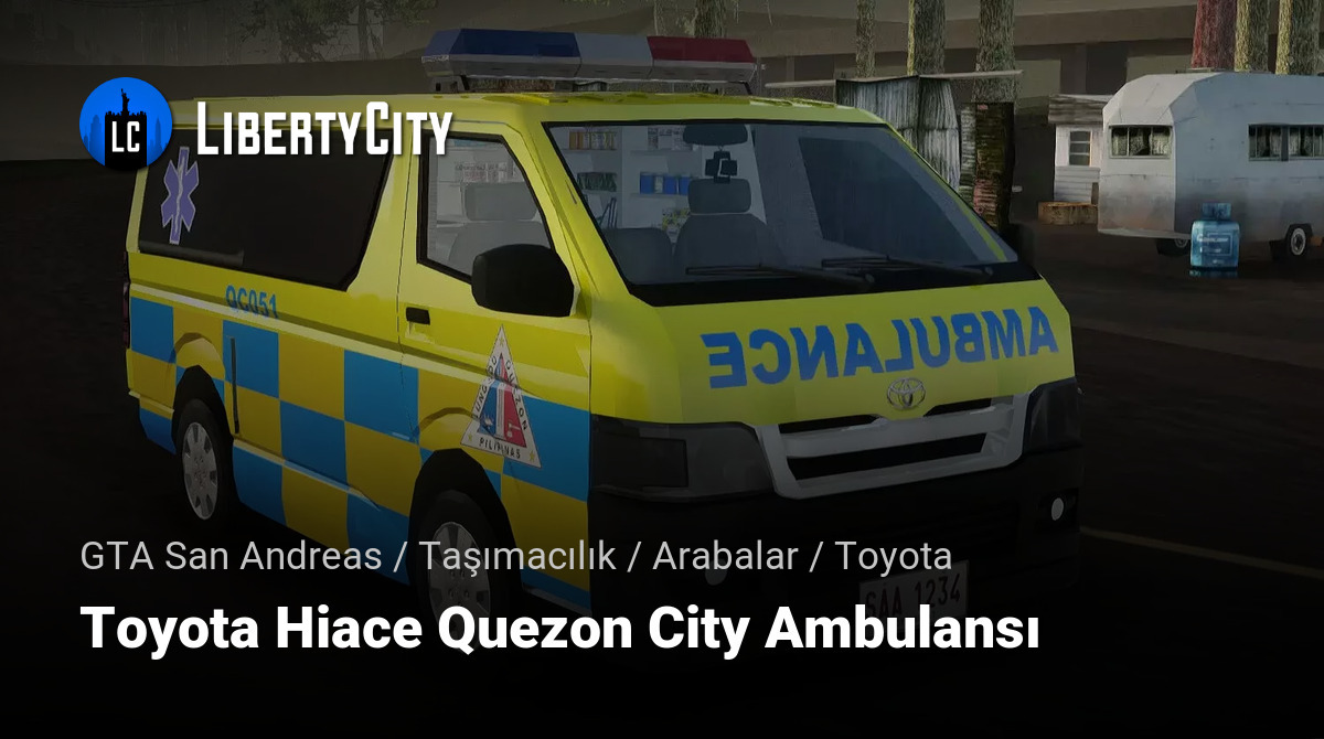 Toyota Hiace Quezon City Ambulansı modu, GTA San Andreas'a acil tıbbi çağrılar için tasarlanmış özel bir ambulans aracı ekler. Bu minibüs, gerekli ekipmanlarla donatılmıştır ve geniş iç mekanı sayesinde ilk yardım ve hasta taşımak için konforlu bir ortam sağlar. Model, Keson Şehri'nin ambulans stilinde tasarlanmış olup, tıbbi hizmet standartlarına uygun resmi ve tanınabilir bir görünüm sunar.