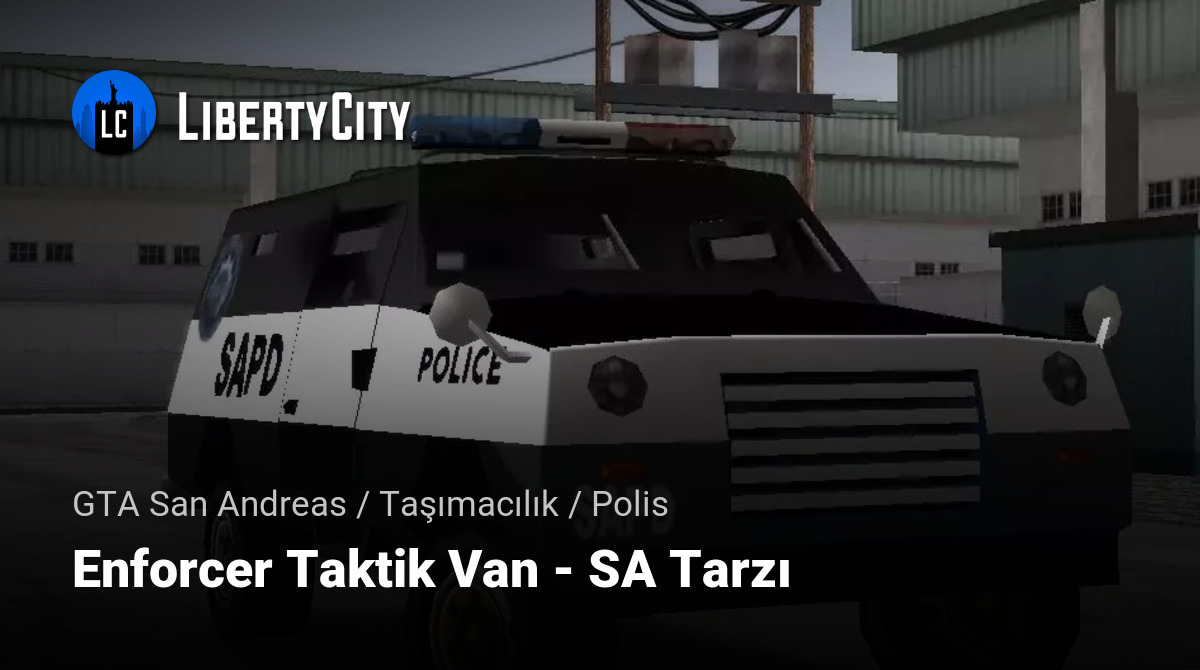 The Enforcer Tactical Van is basically the FBI truck modified and with more accessories like emergency lights on the sides, it replaces the Enforcer.TXD and Enforcer.DFF models.