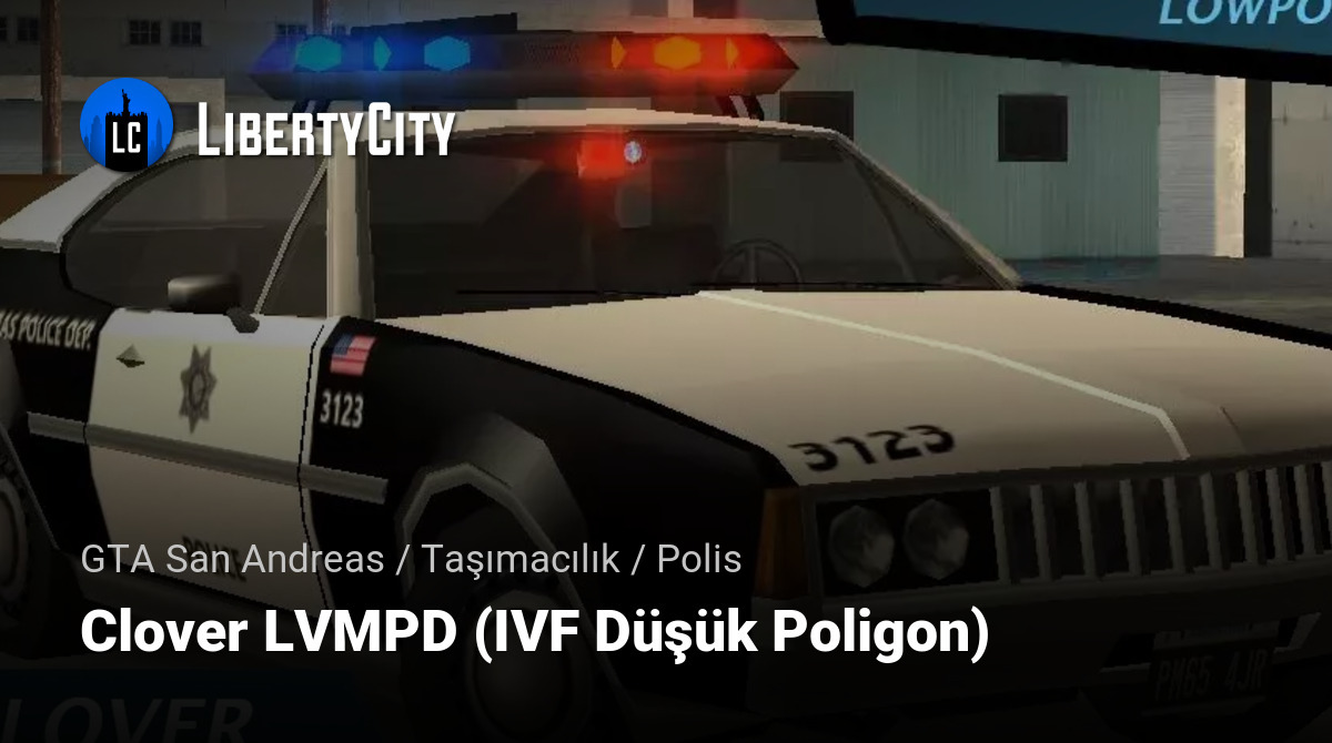 "Clover LVMPD ivf lowpoly" dosyasını indirin ve Las Venturas Polis Departmanı tarafından benimsenen yeni devriye aracının tadını çıkarın.