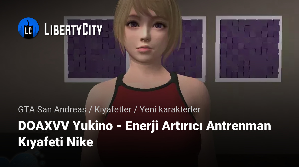 GTA San Andreas için yeni bir skin sunuyorum — "DOAXVV Yukino — Enerji Artırıcı Antrenman Kıyafeti Nike". Bu mod, Dead or Alive Xtreme Venus Vacation'dan Yukino'yu oyuna ekliyor, şık Nike spor kıyafetleri içinde. Skin, yüksek kaliteli dokulara sahip ve hem PC hem de Android sürümleriyle tamamen uyumlu. Detaylı tasarımı ve uyumluluğuyla, bu skin oyun deneyiminize sorunsuz bir şekilde entegre olacak ve GTA SA deneyiminize taze bir görünüm katacak.