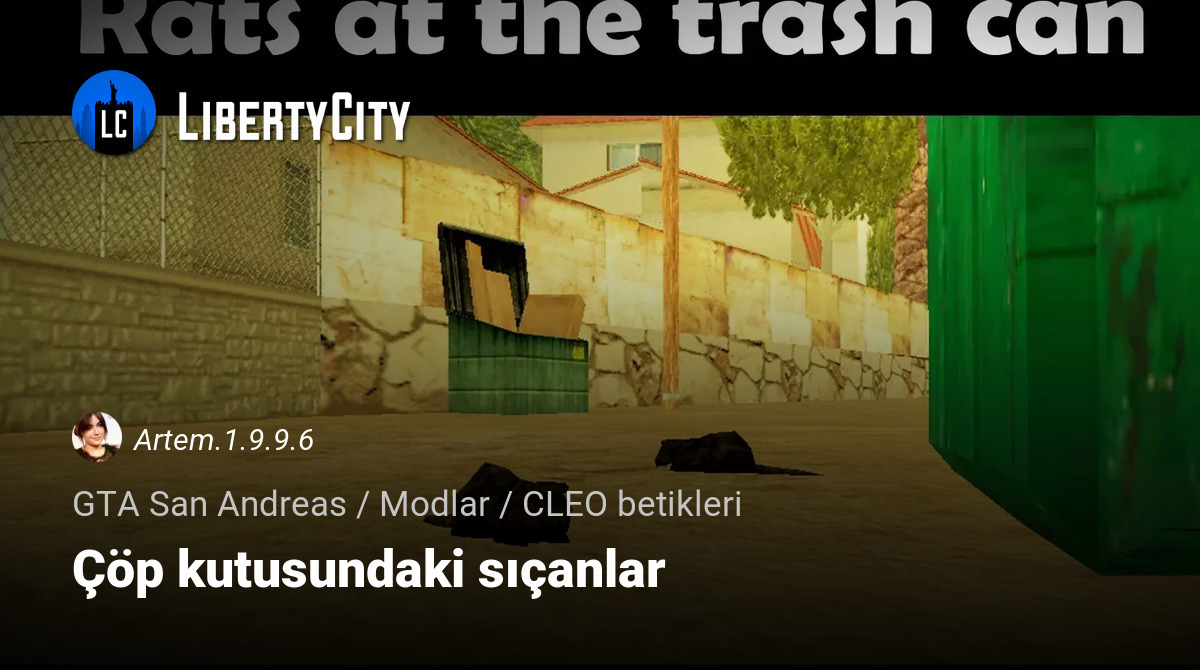 Данный мод добавляет живых крыс возле мусорных баков. Чем дальше от людей мусорный бак, тем больше шанс увидеть там большое количество крыс. Также количество зависит от времени дня. Модель крысы из игры Manhunt, благодаря чему она выглядит максимально естественно в GTA SA.