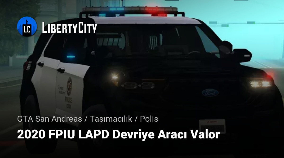 2020 FPIU LAPD Devriye Aracı Valor, Los Angeles Polis Departmanı tarafından kullanılan modern bir polis SUV'sidir. Araç, Valor ışık barı ile donatılmış olup, yüksek arazi kabiliyeti, geniş iç hacmi ve LAPD'ye özgü renk düzeni ile dikkat çekmektedir.