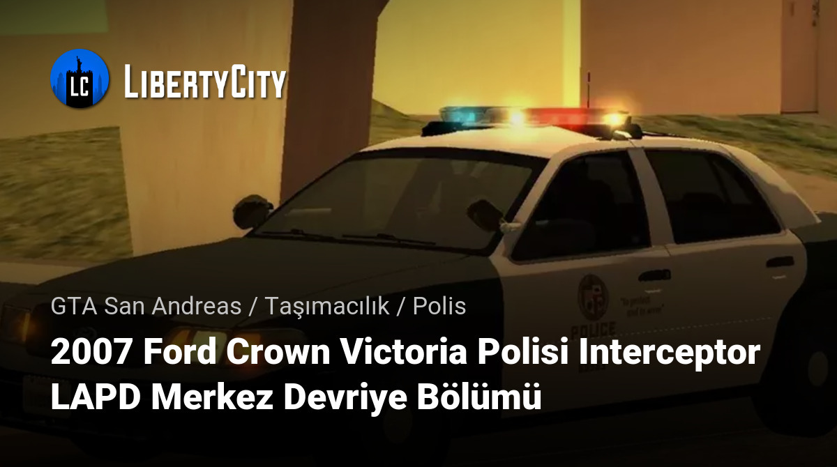 2007 Ford Crown Victoria Polisi Interceptor LAPD Merkez Devriye Bölümü — bu, Los Angeles polisinin merkez devriye biriminin güvenilir ve geniş bir araçtır. Şehir merkezindeki bölgeleri devriye gezmek ve olaylara müdahale etmek için aktif olarak kullanılmıştır.