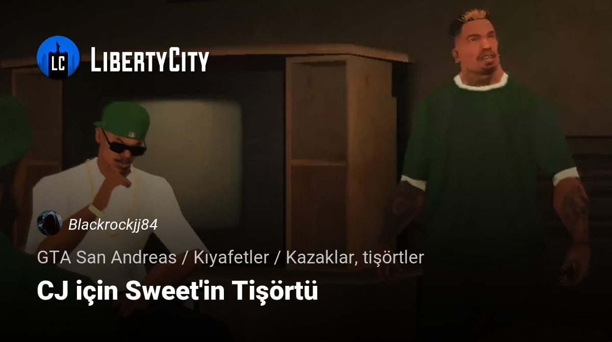 This mod adds a Sweet-style T-shirt for CJ. It is based on the standard T-shirt model, and special thanks go to ebrahem1 for the texture.