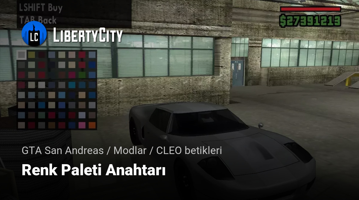 Mod, renk seçme menüsünde renk paletini değiştirmeyi sağlar. Oyunda, varsayılan olarak, 64 renkten birini seçebilirsiniz, ancak carcols.dat dosyasında 128 renk bulunmaktadır. Bu mod ile 0-63 ve 64-127 arasında geçiş yaparak tüm 128 rengi erişilebilir hale getirebilirsiniz. En önemlisi, garajda aracı kaydederken renkler de kaydedilecektir, çünkü bunlar listeye göre normal oyun renkleridir.