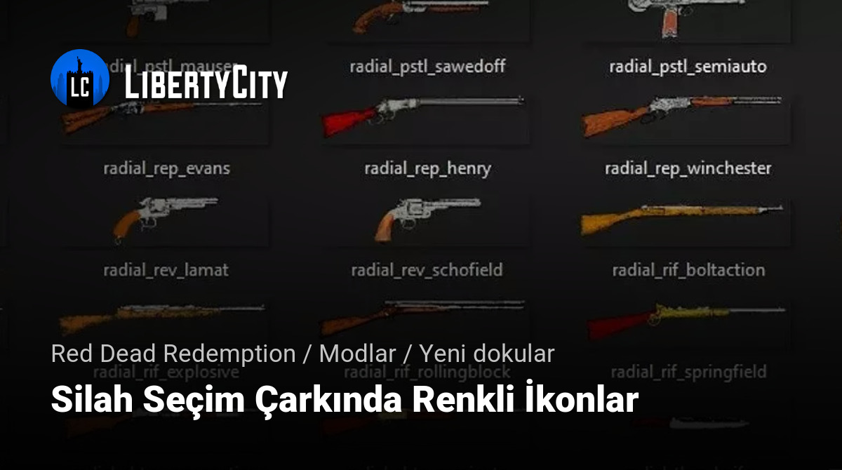 Bu mod, Red Dead Redemption'da silah seçim menüsündeki ikonları değiştirerek onlara renk ekler. Standart monokrom ikonlar yerine, daha parlak ve renkli görüntüler göreceksiniz, bu da silah seçimini daha rahat ve görsel olarak çekici hale getirebilir.